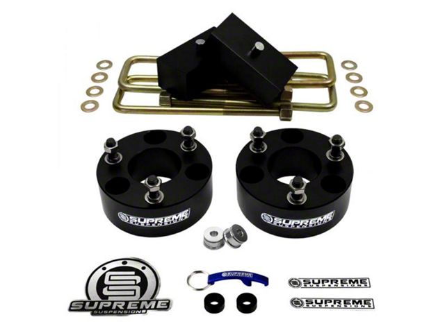 Convenient Installation. The Supreme Suspensions 2-Inch Front / 2-Inch Rear Pro Billet Suspension Lift Kit comes with hardware and detailed instructions, so you can get back on the road in no time.