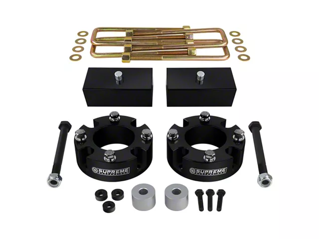 Heavy-Duty Lift Components. Engineered to provide your Tundra with superior stance, Supreme Suspension includes high-strength strut spacers, lift blocks, and U-bolts crafted using heavy-duty materials. The T6 aircraft billet aluminum spacers and blocks were further fortified with a black hard anodized finish to provide an added layer of protection for lasting functionality. In addition, the differential drop spacers lower the front differential and restore the factory inner CV angles for better alignment.