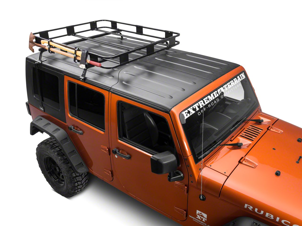 Application. The axe and shovel carrier from Surco fits Toyota 4Runner with the Safari roof rack.