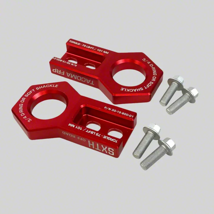High-Capacity Front Recovery Points. The SXTH Off Road Front Recovery Points (Red) provide a reliable, high-capacity solution for vehicle recovery. Designed to replace OEM recovery points, they support a pull direction load capacity of 11,000 pounds each and extend attachment reach by 1.5 inches for superior off-road recovery performance.