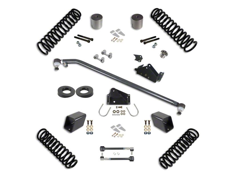 Steering and Suspension Geometry. The Synergy 3 In. Stage 1.5 Suspension Lift Kit for 2007-2018 Jeep Wrangler JK 2 Door models raises lift height by 3" using the 3" Progressive Coil Springs for absolute optimal steering and suspension geometry. The Raised Rear Track Bar Bracket and Front Steering Correction Kit improves steering as well. Due to this lift, this system drives as well as stock and can fit 35" tires with stock fenders or 37" tires with high fenders.