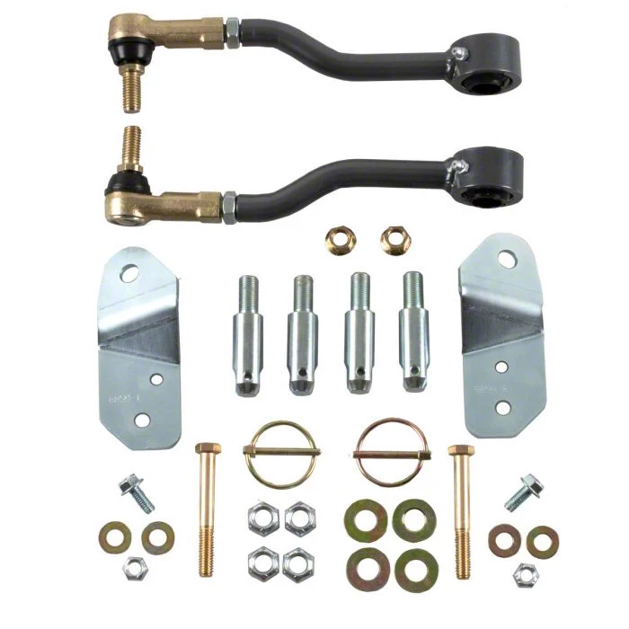 Clear Zinc-Plated Components. Synergy included clear zinc-plated components in this front sway bar link package. They added greasable spherical bushings for hassle-free connection or disconnection of sway bar links. They also put on frame-side brackets to secure the disconnected sway bar links. Moreover, they added sealed tie rod ends that directly link the sway bar links to your Jeep’s sway bar.