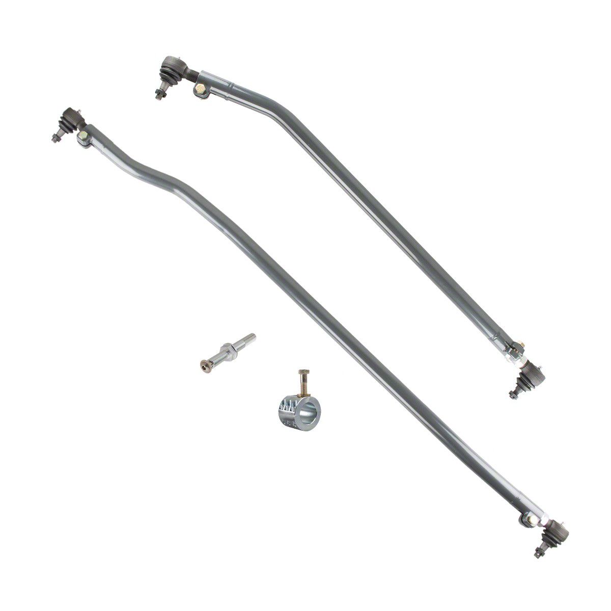 Construction and Appearance. This kit is built using CNC-formed 1.5-inch x .250 wall 1026 DOM tubing for the drag link and 1.5-inch x .188 wall heat-treated 4130 chromoly tubing for the tie rod, delivering exceptional toughness. It comes with Synergy's HD metal-on-metal tie rod ends that eliminate steering "flop" and ensure precise handling. Finished with an abrasion-resistant powder coat, the kit resists corrosion and heavy wear. Its robust design ensures long-lasting performance and a clean, aggressive look.