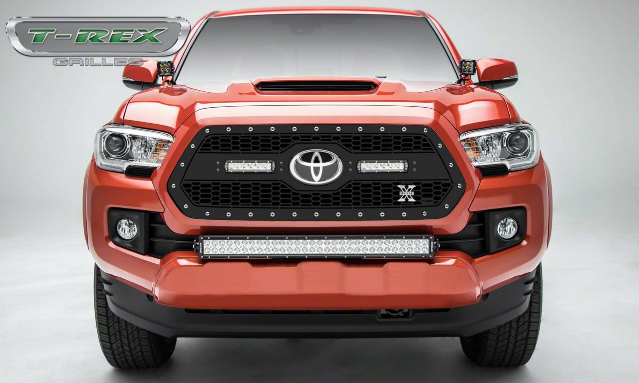 Enhanced Style and Functionality. Boost your Tacoma’s front end protection and style by installing the T-REX Laser Torch Series Black Upper Grille Insert with 6-Inch LED Light Bars. This grille effortlessly transforms your truck’s overall exterior with an elegantly neat honeycomb pattern that radiates confidence and distinctive visual appeal.