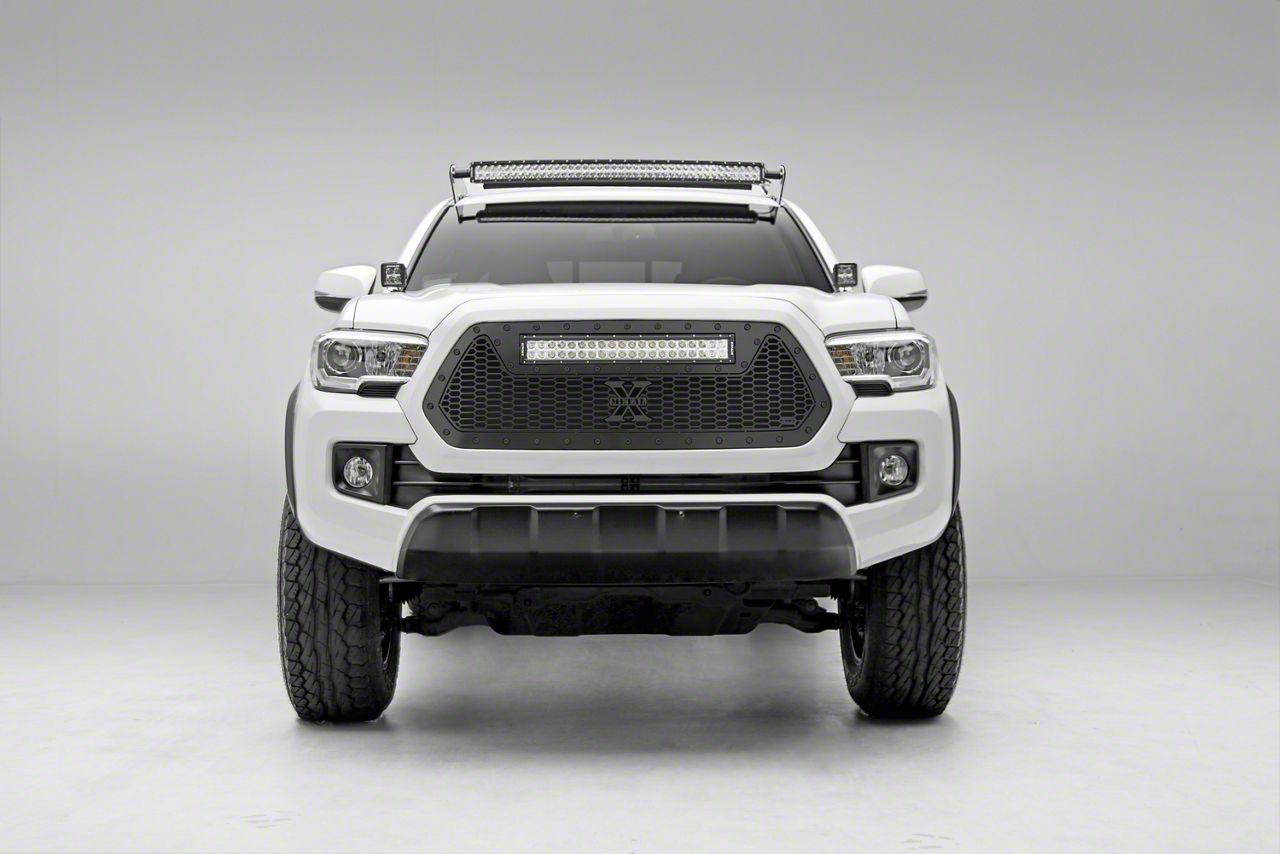 Honeycomb Style. Take your Tacoma’s dull looks and upgrade it with this Black T-REX Stealth Laser Torch Series Upper Grille Insert with a 20-inch LED Light Bar. The unique repeating honeycomb pattern gives your Tacoma a custom look like no other. X-Metal studs and a wire mesh provides additional appeal while a 20-inch LED light bar makes nighttime driving safer. This upper grille insert also comes with ZROADZ LED lights for additional nighttime illumination.