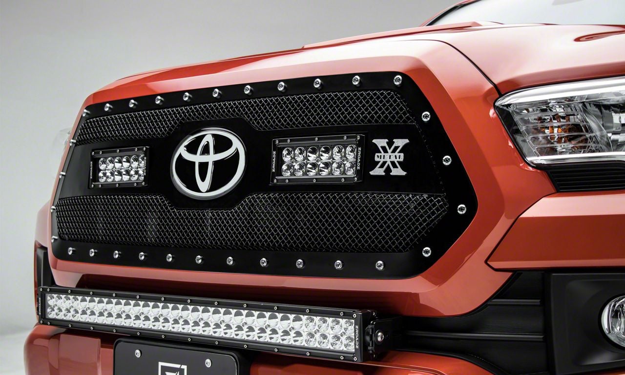 Application. The T-REX Torch Series Black Upper Grille Insert With 6-Inch LED Light Bars fits all 2018 to 2023 Toyota Tacoma models, excluding the TRD Pro.
