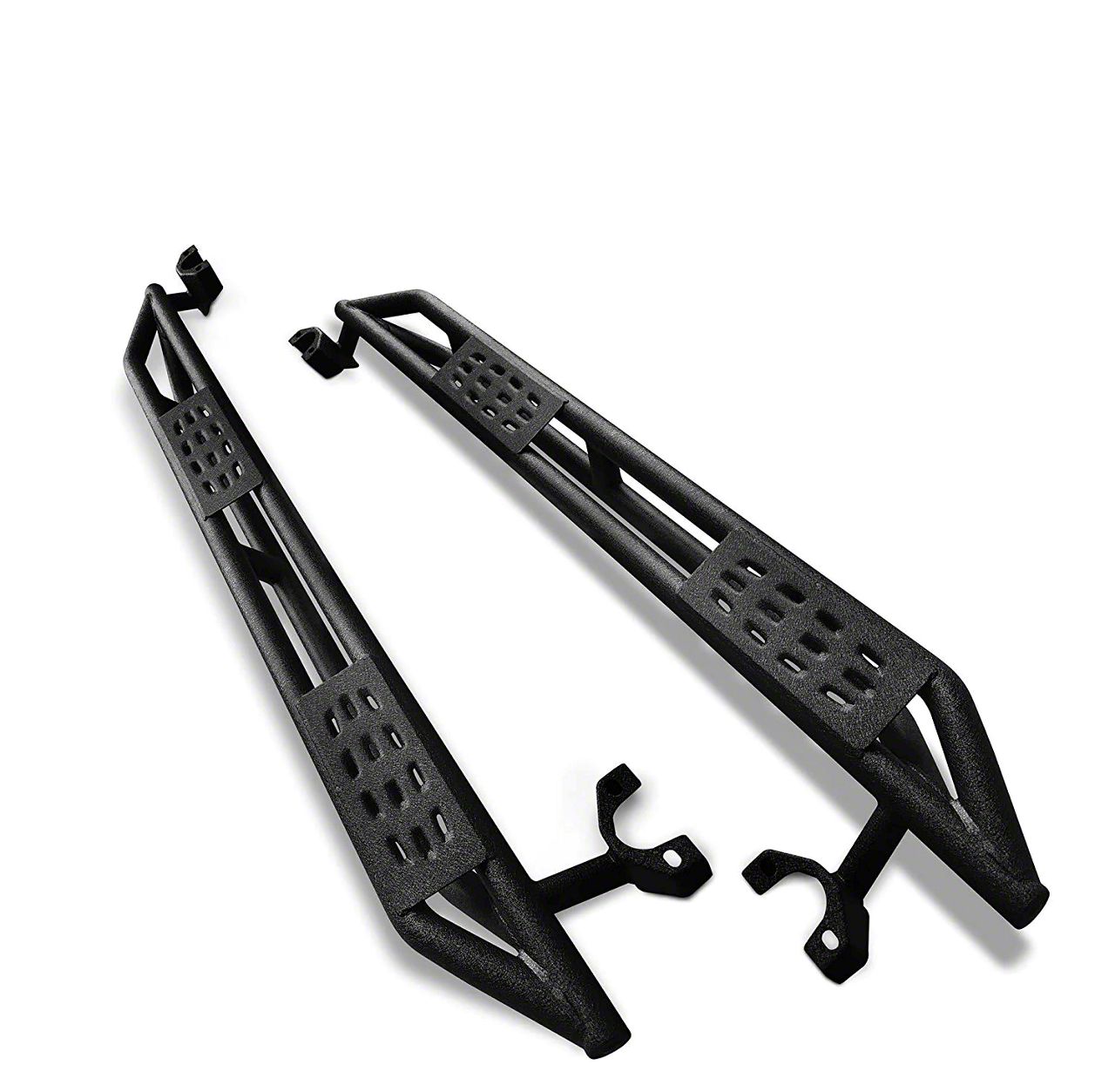 Construction and Appearance. Crafted from heavy-duty 1.9-inch diameter tubing, these rocker steps offer superior strength and durability. The textured black finish enhances corrosion resistance while providing a sleek, aggressive look that complements your Wrangler’s rugged styling.