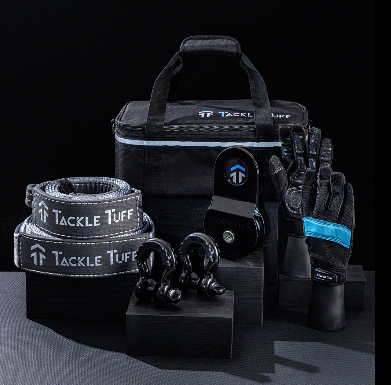 Ultimate Recovery Solution. The Tackle Tuff Deluxe Recovery Kit is the perfect solution for all your recovery needs, providing professional-grade components and accessories to ensure you're prepared for any situation. This kit includes essential items like shackles, snatch blocks, Kevlar-reinforced gloves, a tactical carry bag, and more, making it indispensable for off-road enthusiasts.