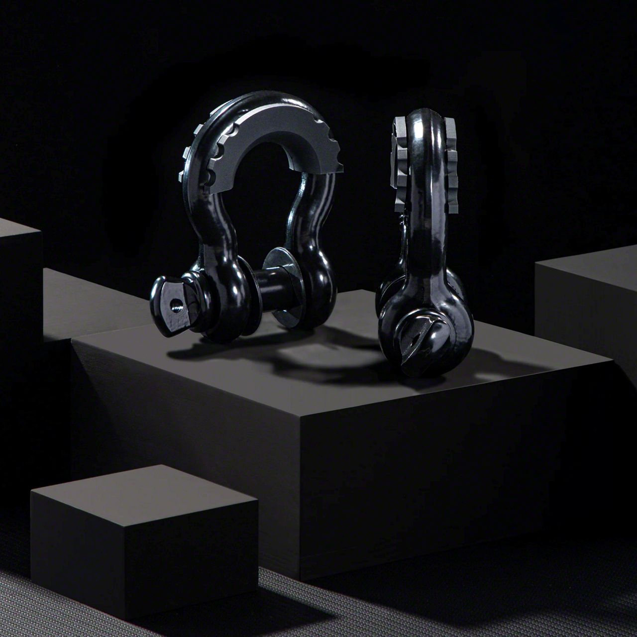 Heavy-Duty Shackle Kit. The Tackle Tuff Deluxe 3/4-Inch Shackle Kit (Black) is designed for efficient recovery and towing operations. With a breaking strength of 9.5 tons and a working load limit of 4.75 tons, this kit is ideal for handling heavy-duty applications with ease. Its threaded pin and rubber isolators ensure road stability and minimize rattling noise during transport.