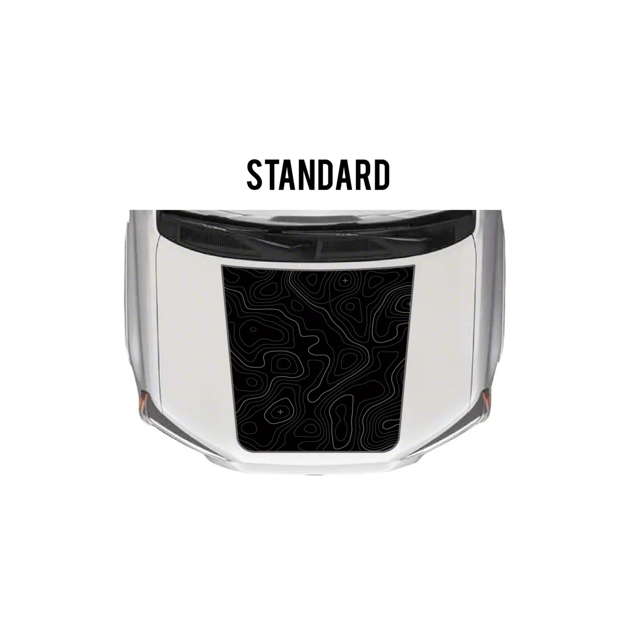 Adventure-Inspired Hood Styling. The Taco Vinyl Hood Stamp Decal transforms the look of your 4Runner with a rugged matte black base and subtle gray topographic map overlay. This precision-cut decal enhances the front-end appearance while also serving a functional role by reducing glare from the hood during off-road driving.