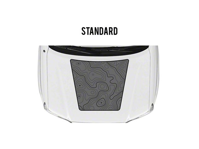 Application. This Taco Vinyl Hood Stamp Decal; Gray with Black Topography fits 2005–2015 Tacoma models without a hood scoop.