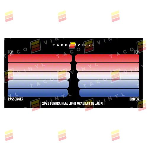 Best way to add a bit of color to your new 2022+ Tundra. These decals fit perfectly beneath the headlight on the black plastic shroud. Once they're applied, add heat and apply pressure to ensure a solid application.