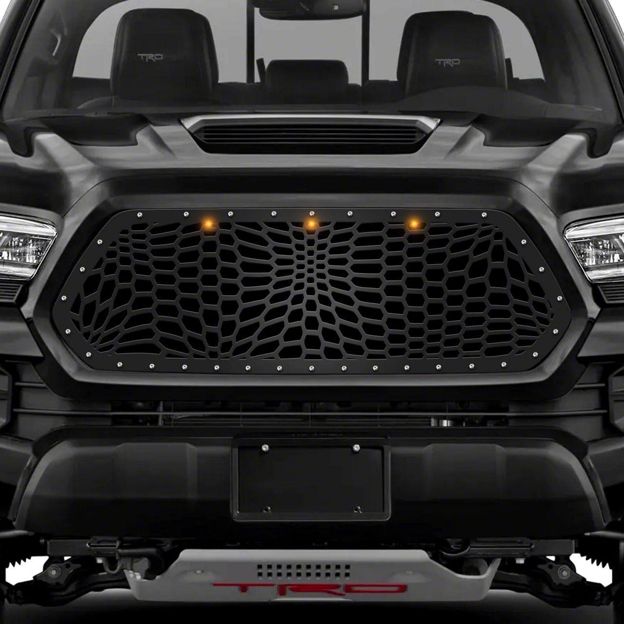 Application. This 1-Piece Steel Upper Replacement Grille; Marine Camo with Amber Raptor Lights fits all 2016-2017 Toyota Tacoma models.