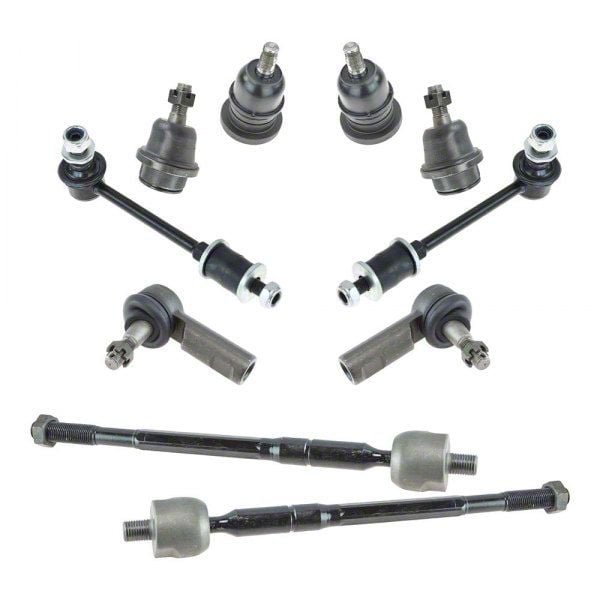 Performance. A worn-out or compromised steering and suspension system can result in a harsh and uncomfortable ride. With the 10-Piece Steering and Suspension Kit, you'll appreciate a smoother and more comfortable driving. The 10-Piece Steering and Suspension Kit incorporates components that contribute to better shock absorption and vibration dampening.