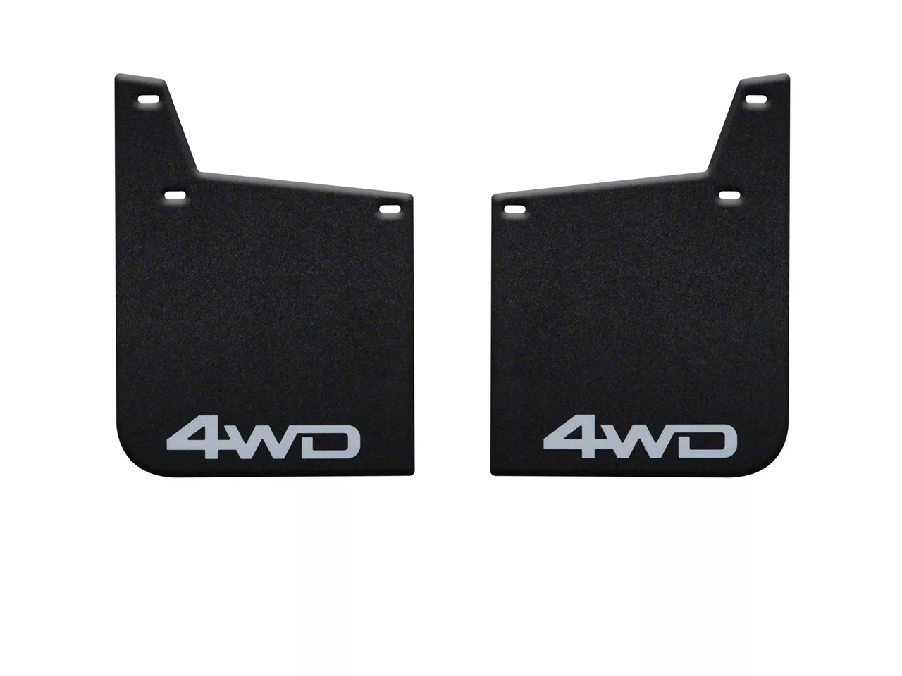 Application. These 11-Inch x 15-Inch Mud Flaps with White 4WD Logo; Front are designed to fit 2016-2023 Toyota Tacoma models.