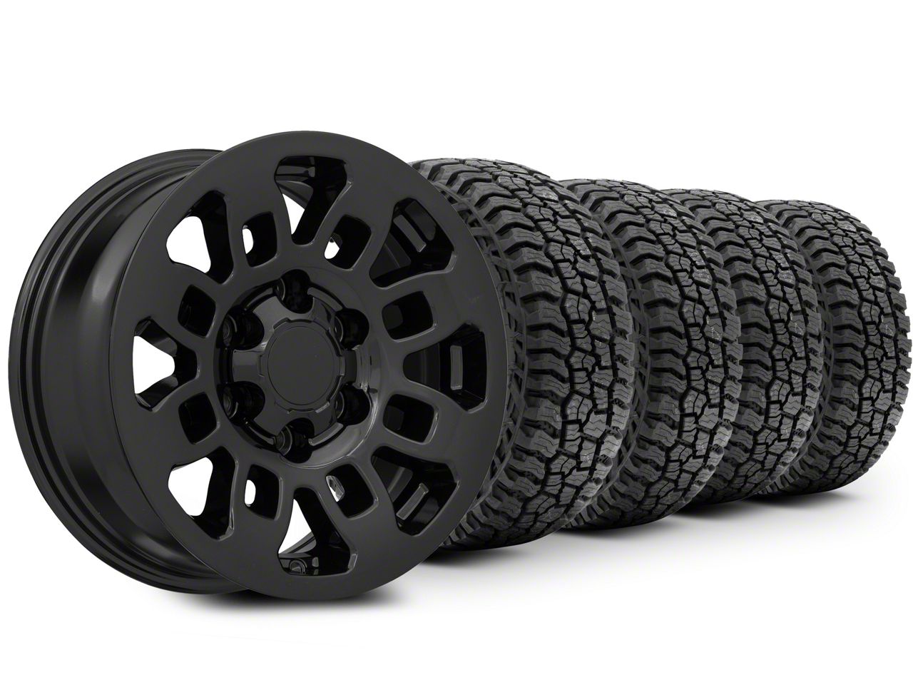 Mounted and Balanced Wheel and Tire Kit. This wheel and tire combo kit features (4) 16x7 TRD Style Pro Gloss Black 6-Lug Wheels and (4) Mickey Thompson All-Terrain Baja Boss 265/75R16 tires that have been put together into an easy to buy kit that arrives to your door already mounted and balanced ready to be installed on your vehicle.