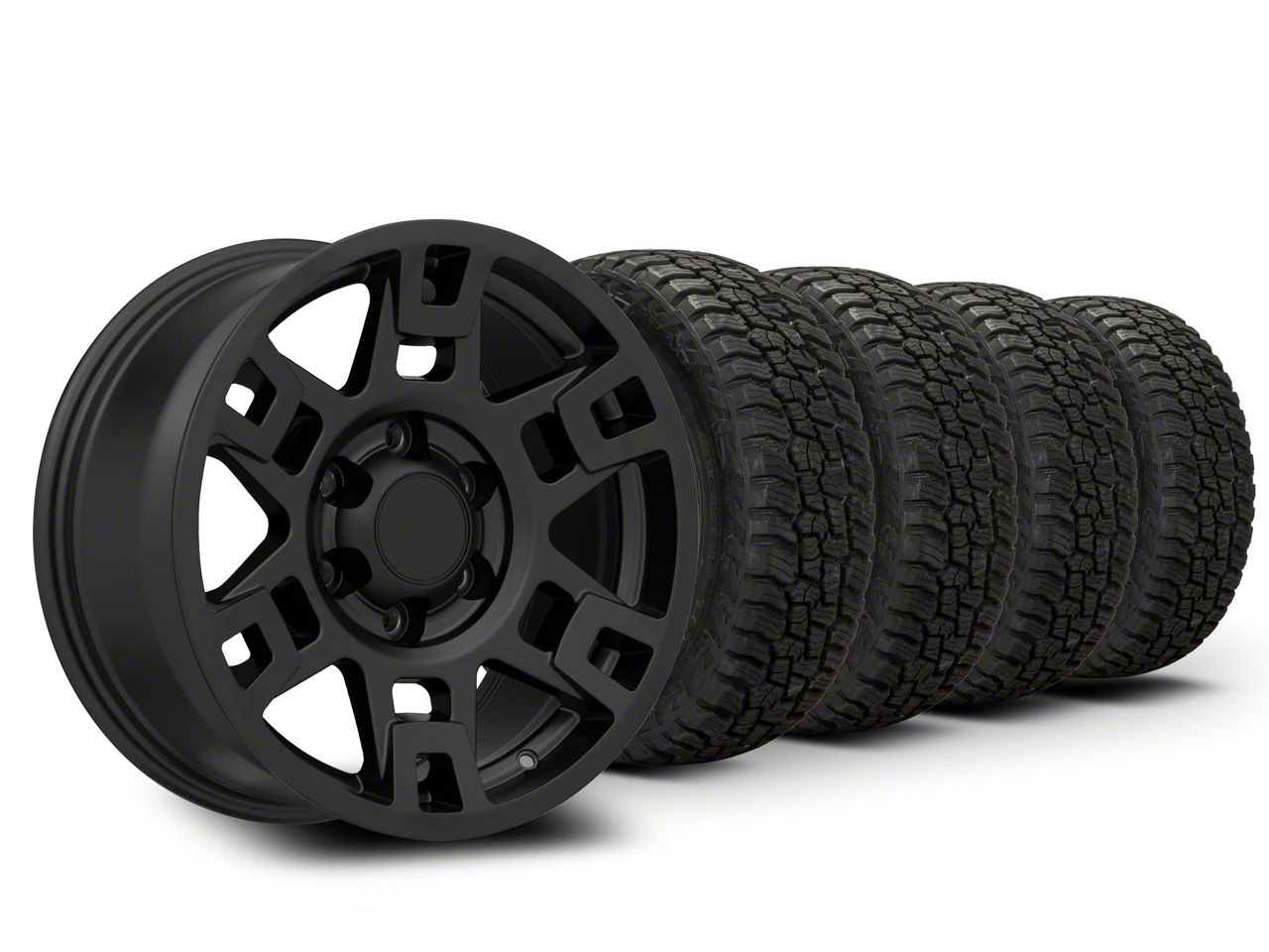 Mounted and Balanced Wheel and Tire Kit. This wheel and tire combo kit features (4) 17x8 TRD Style Matte Black Wheels and (4) Mickey Thompson Baja Boss A/T 32" - 265/70R17 tires that have been put together into an easy to buy kit that arrives to your door already mounted and balanced ready to be installed on your vehicle.