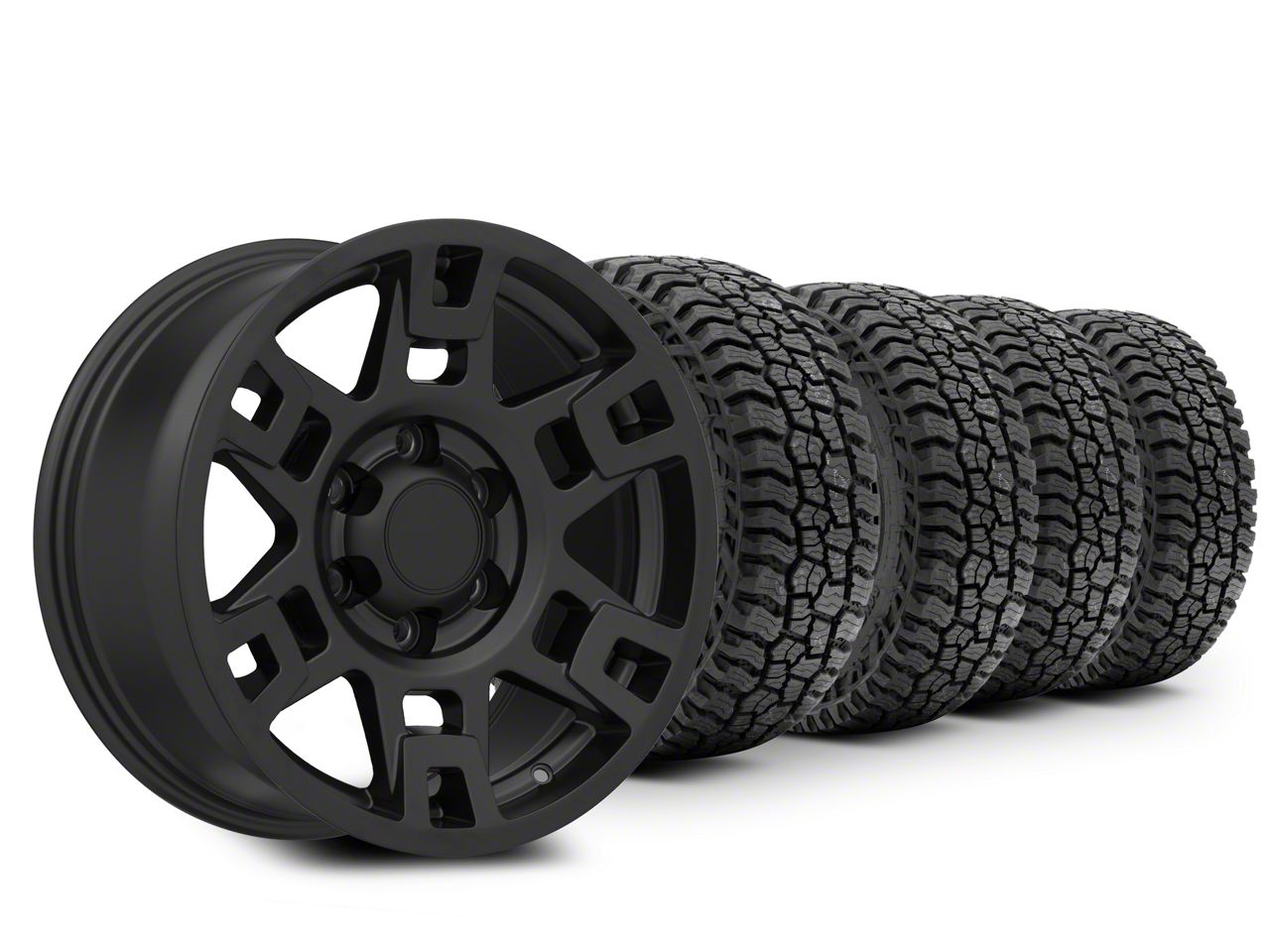 Mounted and Balanced Wheel and Tire Kit. This wheel and tire combo kit features (4) 17x8 TRD Style Matte Black 6-Lug Wheels and (4) Mickey Thompson All-Terrain Baja Boss 265/70R17 tires that have been put together into an easy to buy kit that arrives to your door already mounted and balanced ready to be installed on your vehicle.