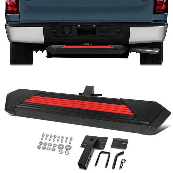 Convenient Step Access With Added Protection. This 2-Inch Receiver Hitch Step is a functional and stylish addition to your truck, providing easy access to your cargo area, roof racks, or truck bed. The heavy-duty construction ensures reliable support while also acting as a buffer against minor rear-end impacts.
