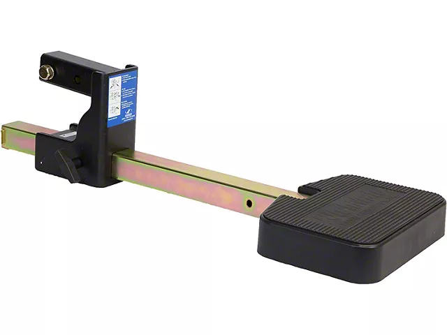 Description. Install the TruckStep XL in your receiver hitch in only a few minutes. Then either push it back into the receiver and fold it up when not in use or extend it out to provide an easy step into and out of your truck with the tail gate up or down. Get in & out of your truck without having to climb or crawl. Fits all 2" receiver hitches. Features and extra-large anti-slip platform that can hold up to 500 lbs! Convenient and easy to use. A must for all truck owners. Step extends up to 31" in length. Anti-Wobble Device included.