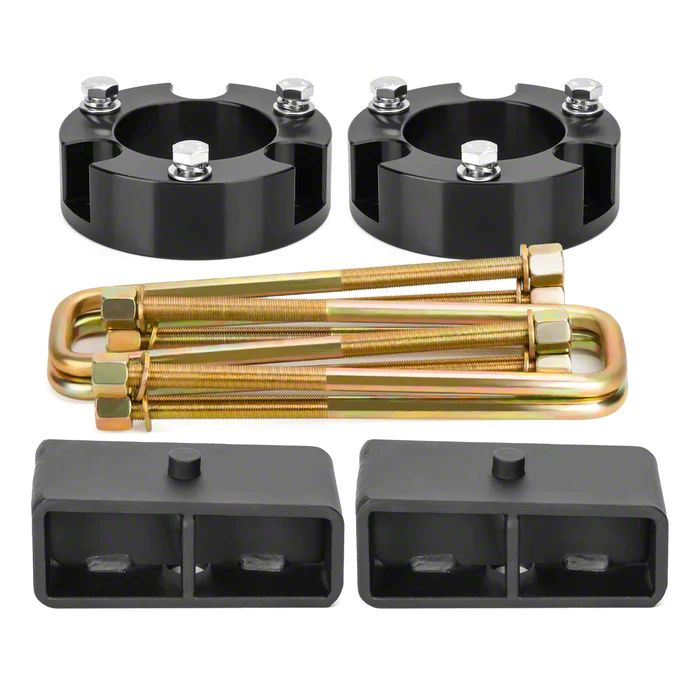 Balanced and Lifted. Introducing our 3-Inch Front/2-Inch Rear Leveling Kit, the ultimate solution for achieving a balanced and lifted stance on your vehicle. This leveling kit is designed to provide an impressive front lift of 3 inches and a rear lift of 2 inches, instantly enhancing both the aesthetics and functionality of your ride. Say goodbye to uneven angles and welcome a smoother, more commanding presence on the road. With the inclusion of this leveling kit, you'll gain valuable additional ground clearance that empowers you to effortlessly accommodate larger tires. Whether you're navigating rough terrains or simply aiming to make a bold statement, the improved clearance opens up a world of possibilities.