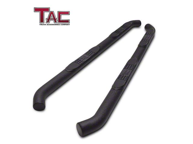 Construction and Appearance. Built from 3-inch round mild steel tubing, these step bars are engineered for strength and long-term durability. The textured black finish offers corrosion resistance and a rugged appearance, while the matte black oval step pads provide secure traction. Together, they combine functionality with a clean, professional design.