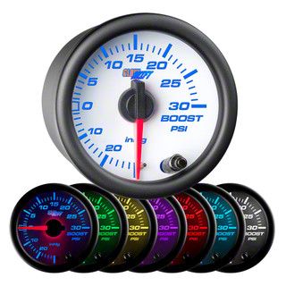 30 PSI Boost/Vacuum Gauge; White 7 Color (Universal; Some Adaptation May Be Required)