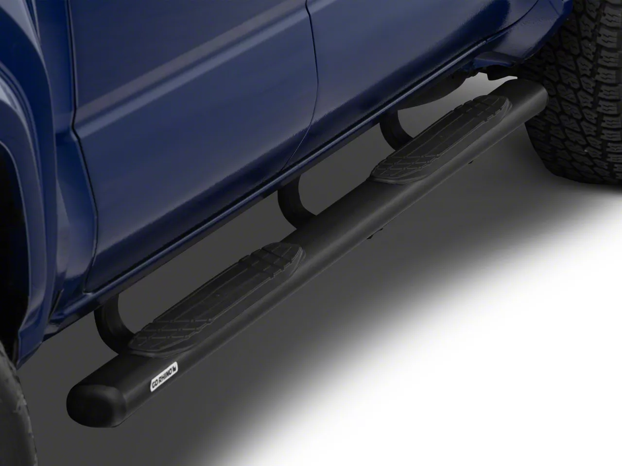 Durable and Stylish. The Go Rhino 4-Inch OE Xtreme Side Step Bars are designed to provide both functionality and style for your 2024-2026 Tacoma Double Cab. These side step bars are constructed from sixteen-gauge zinc-coated galvanized steel, ensuring durability and longevity. The textured black powder-coat finish adds a sleek look while protecting against corrosion.