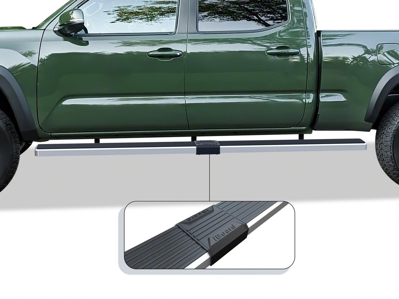 Application. These 5-Inch iStep Wheel-to-Wheel Running Boards; Hairline Silver are designed to fit 2005-2023 Toyota Tacoma Double Cab models equipped with a 6 foot Bed. Driver and passenger side included.