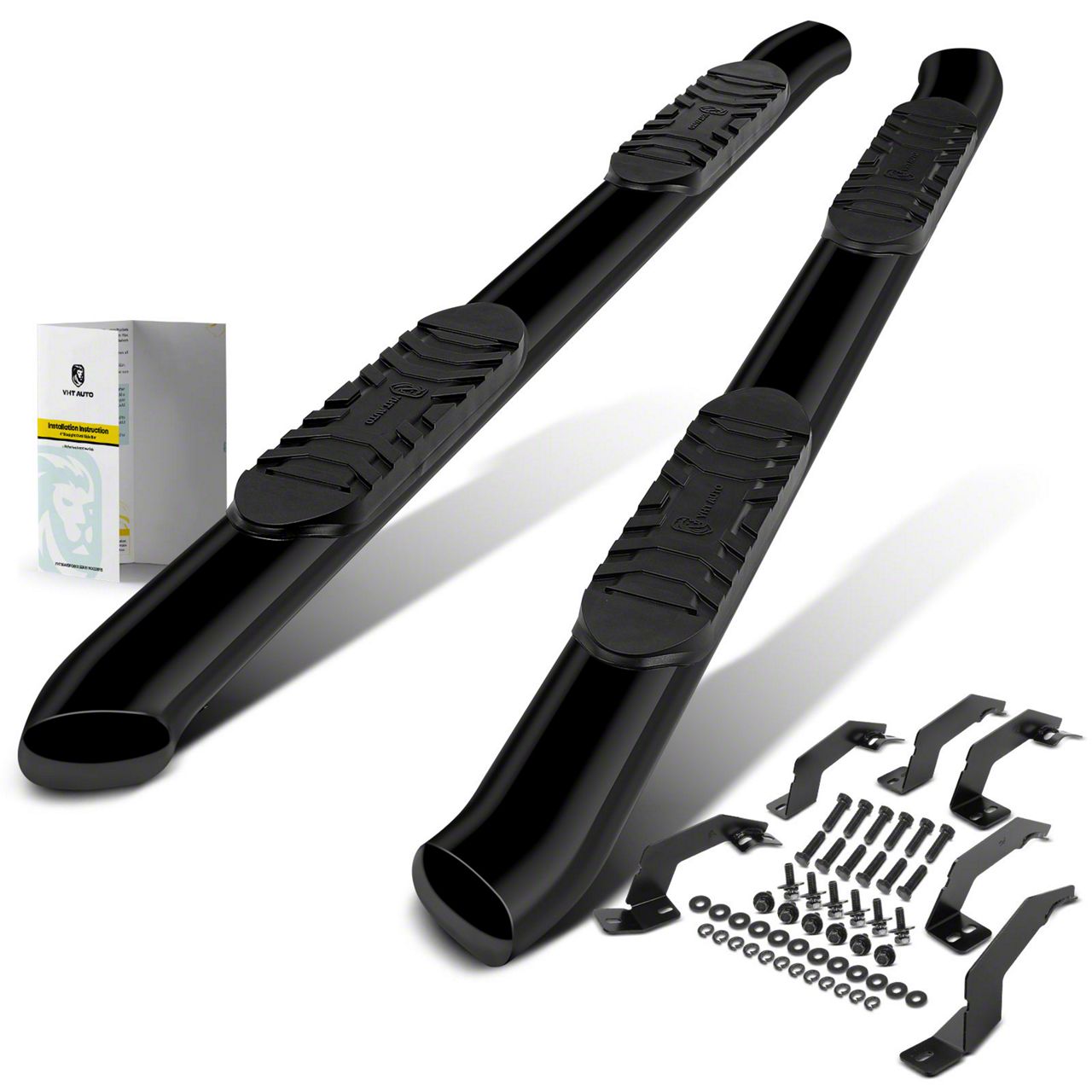 Durable Construction and Finish. Crafted from high-quality steel, these side step bars are built for strength and long-term reliability. The semi-gloss black powder coat finish protects against rust and corrosion, maintaining an attractive appearance even in harsh environments.