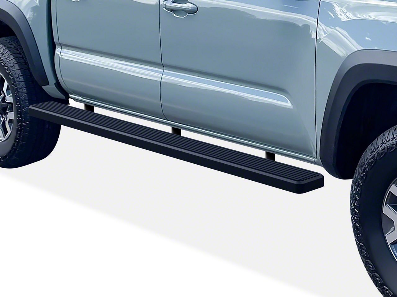 Application. These 6-Inch iStep Wheel-to-Wheel Running Boards; Black are designed to fit 2005-2023 Toyota Tacoma Double Cab models equipped with a 5 foot Bed. Driver and passenger side included.
