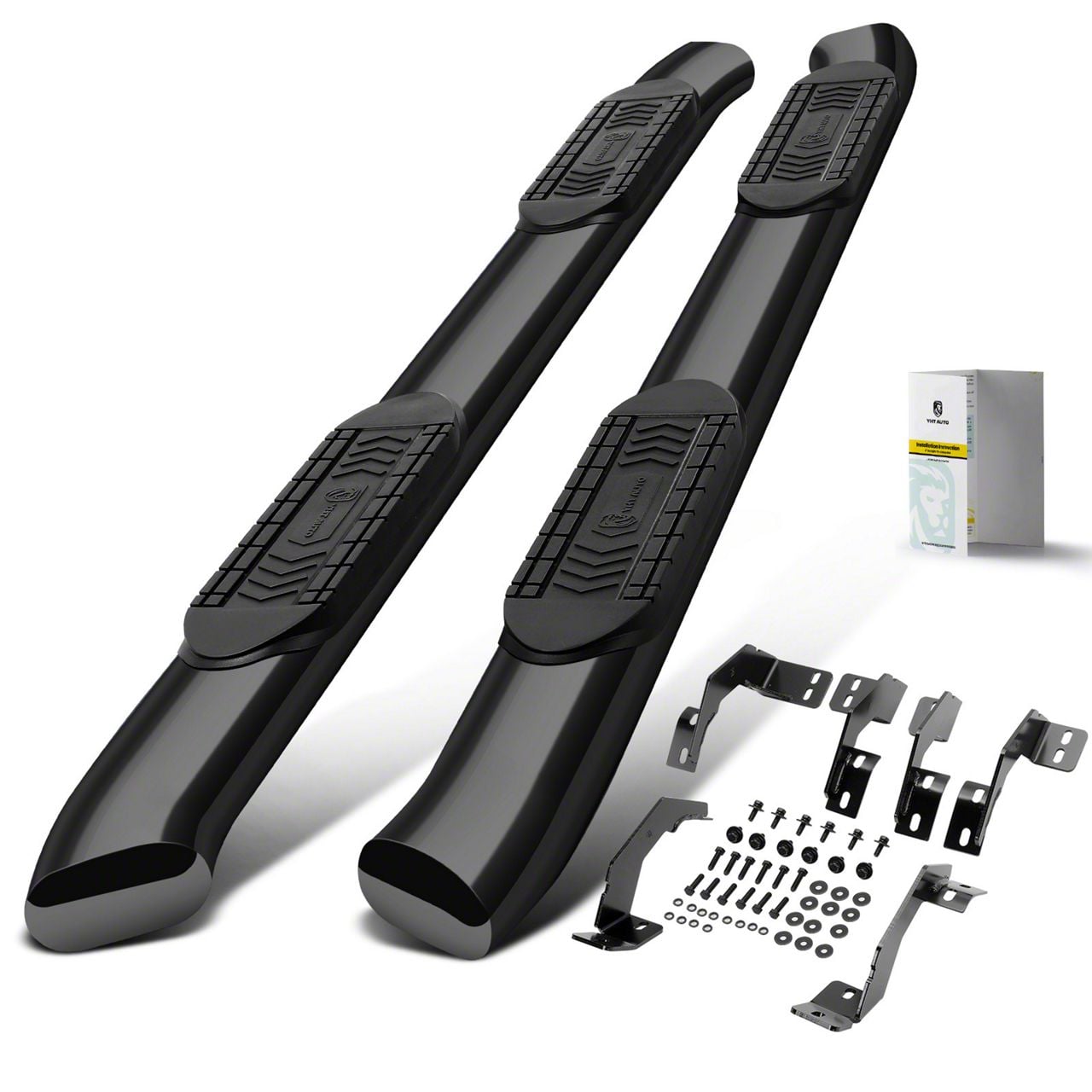 Construction and Features. Finished in matte black, these side step bars are corrosion-resistant and built to withstand harsh environments. The oval non-slip step pads ensure secure footing, while the durable construction helps shield your vehicle from damage during off-road or daily driving.