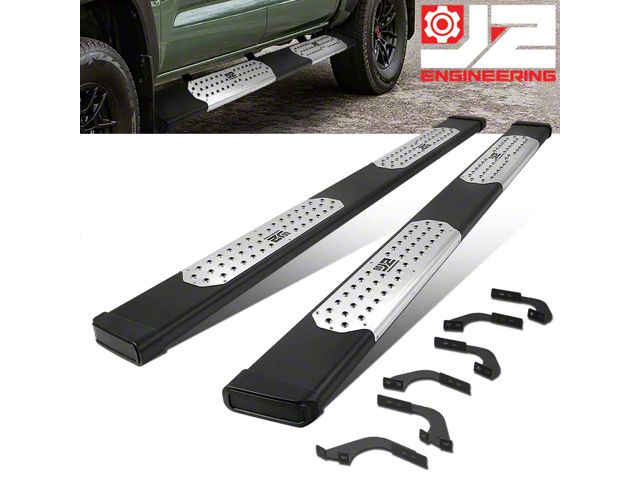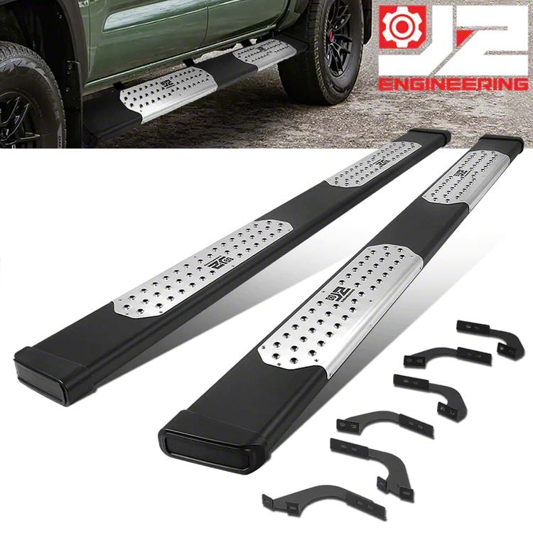 Construction and Appearance. These running boards feature a wide 6.5-inch step area, enhancing convenience and safety. The slip-resistant step pads provide secure footing, reducing the risk of slips and falls. The combination of aluminum alloy and stainless steel construction offers excellent rust resistance and durability.
