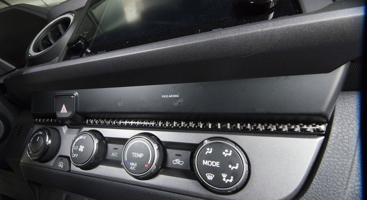 Interior Styling. Add a new interior look to your Toyota Tacoma with this Above Climate Control Accent Trim Strip; Domed Carbon Fiber. These 2 pieces give a cool style appearance and they are positioned above your climate controls.