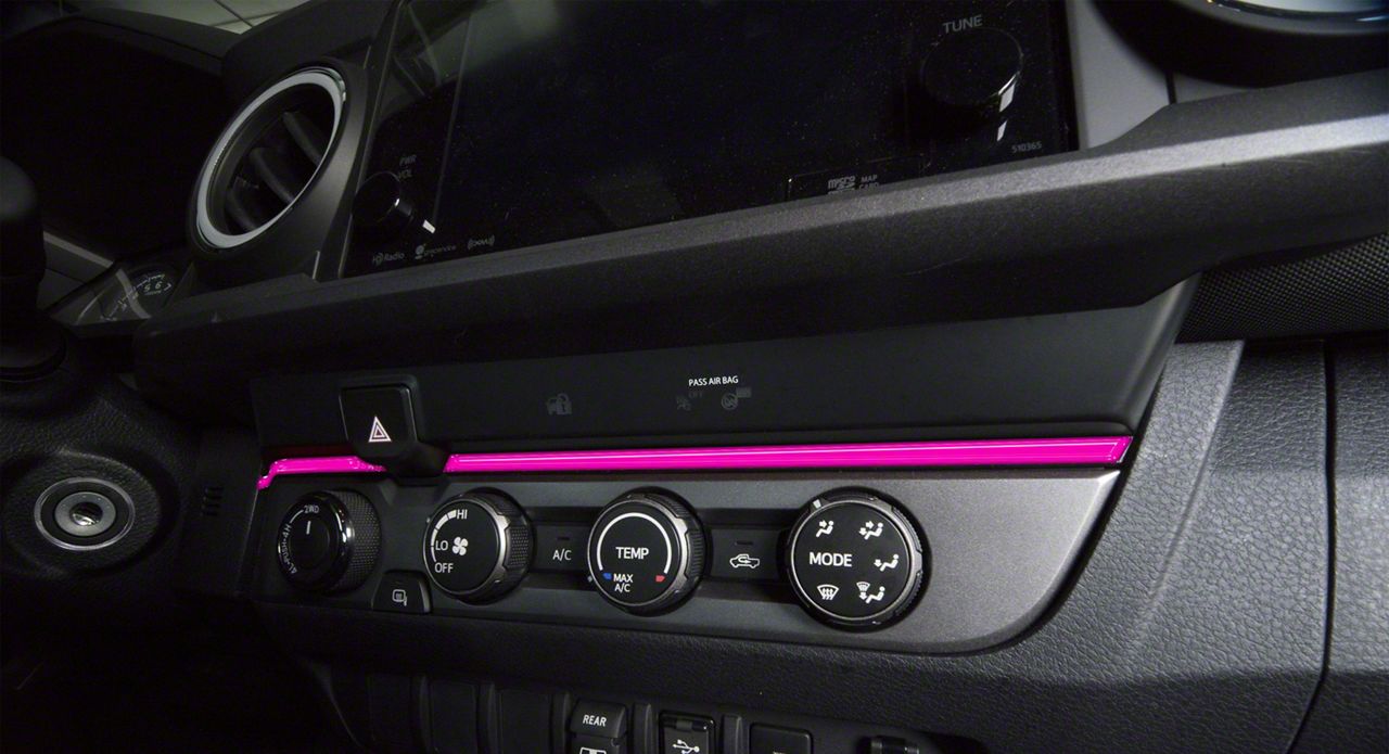 Interior Styling. Add a new interior look to your Toyota Tacoma with this Above Climate Control Accent Trim Strip; Hot Pink. These 2 pieces give a cool style appearance and they are positioned above your climate controls.
