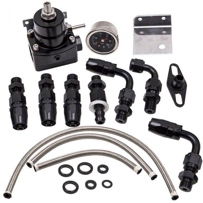 Specification- Fitting: Made of high quality T6061 Aluminum,-6AN size\- Hose Length: 1x 170 mm & 1x 380 mm & 1x 660 mm\- Hose Material: 304 stainless steel + CPE synthetic rubber 1-3/4" | 45 mm gauge,1/8" NPT gauge port\- Adjustable from 0 to 100 psi to maximum fuel pump capacity\- Fuel pressure regulator,-6 AN inlet ports and return port\- Power application:300-800 hp\- Anodized surface\- Billet aluminum body\- 100% Brand New\- one year warranty for any manufacture defectsPackage Includes1 X Fuel pressure regulator\1 X Liquid filled gauge\7 X AN-6 fittings\3 X Braided Hose\Hardwares as pictures showNote- Please check the detailed measurements before placing order.\- No Installation Instruction included, Professional installation is highly recommended.\- Please check our store for other auto parts you may be interested in. \- Please feel free to contact us for whatever we can help.