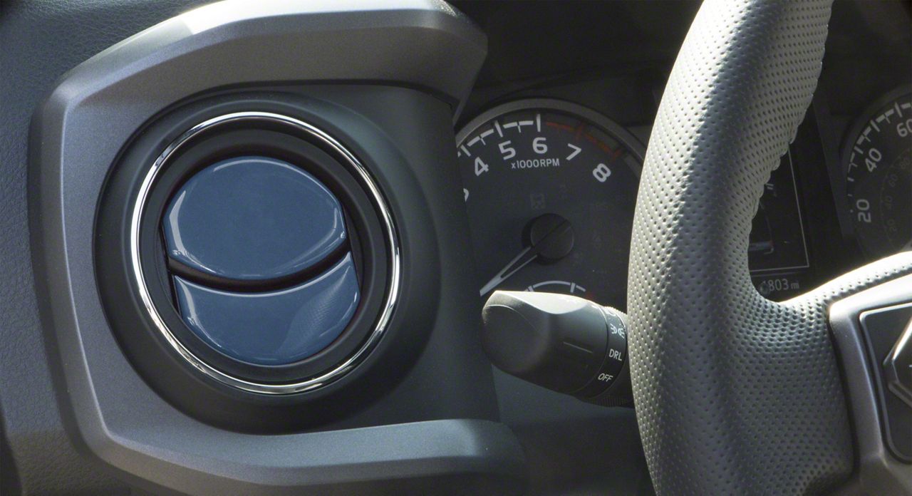 Interior Styling. Add a new interior look to your Toyota Tacoma with this set of Air Vent Accent Trim; Cavalry Blue. These 8 pieces give a cool style appearance and they are positioned over the eye lids of each vent.