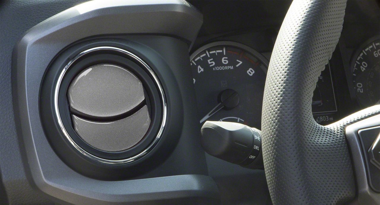 Interior Styling. Add a new interior look to your Toyota Tacoma with this set of Air Vent Accent Trim; Charcoal Silver. These 8 pieces give a cool style appearance and they are positioned over the eye lids of each vent.