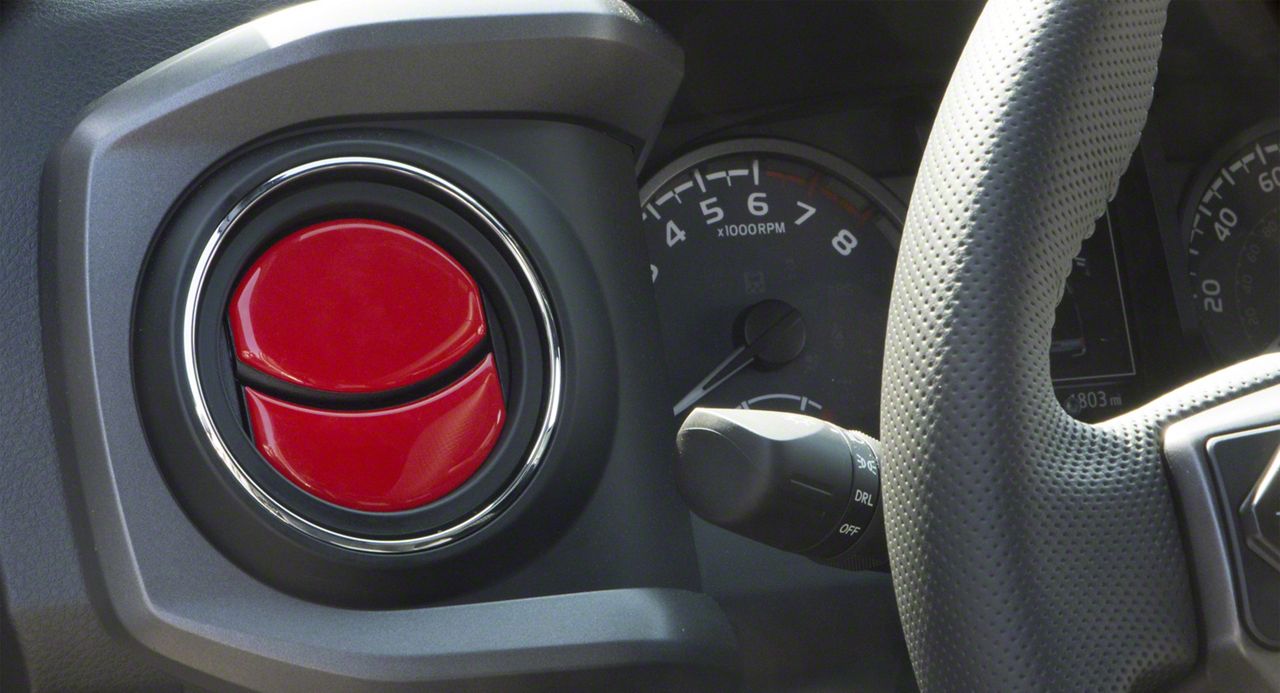 Interior Styling. Add a new interior look to your Toyota Tacoma with this set of Air Vent Accent Trim; Gloss TRD Red. These 8 pieces give a cool style appearance and they are positioned over the eye lids of each vent.