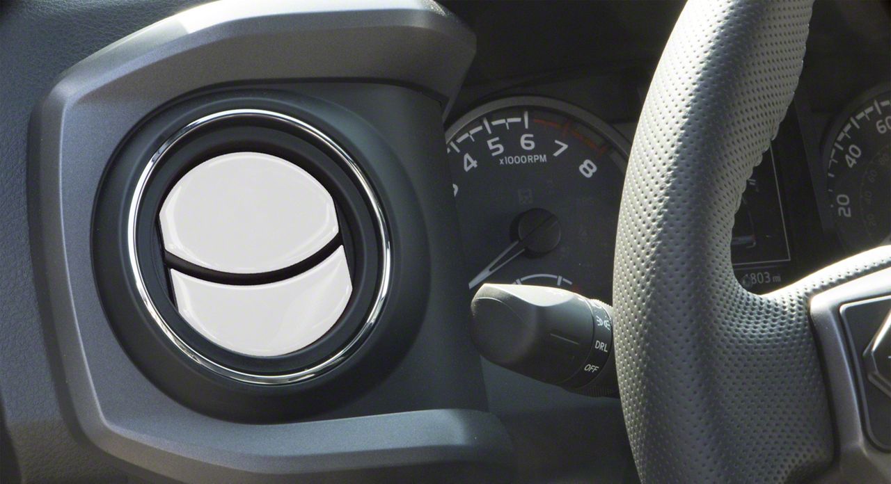 Interior Styling. Add a new interior look to your Toyota Tacoma with this set of Air Vent Accent Trim; Gloss White. These 8 pieces give a cool style appearance and they are positioned over the eye lids of each vent.