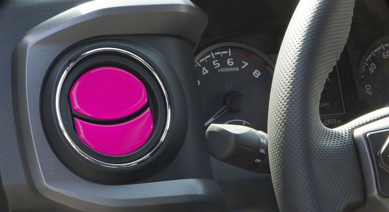 Interior Styling. Add a new interior look to your Toyota Tacoma with this set of Air Vent Accent Trim; Hot Pink. These 8 pieces give a cool style appearance and they are positioned over the eye lids of each vent.