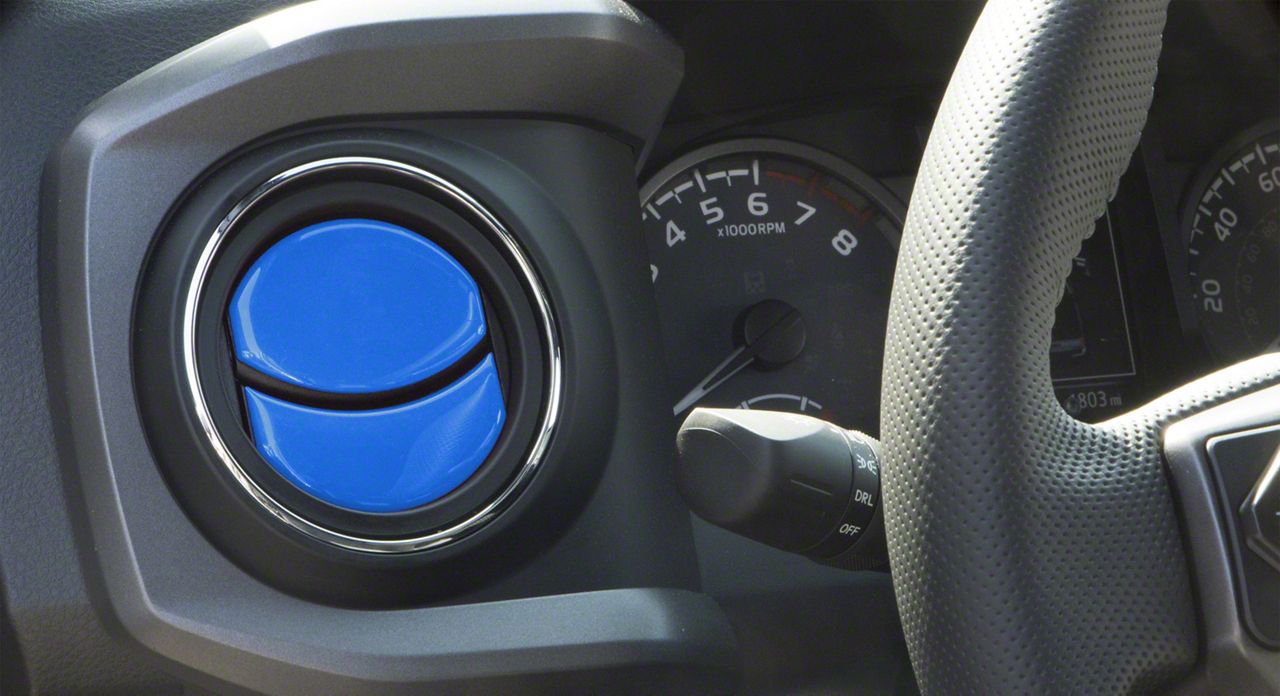 Interior Styling. Add a new interior look to your Toyota Tacoma with this set of Air Vent Accent Trim; Voodoo Blue. These 8 pieces give a cool style appearance and they are positioned over the eye lids of each vent.