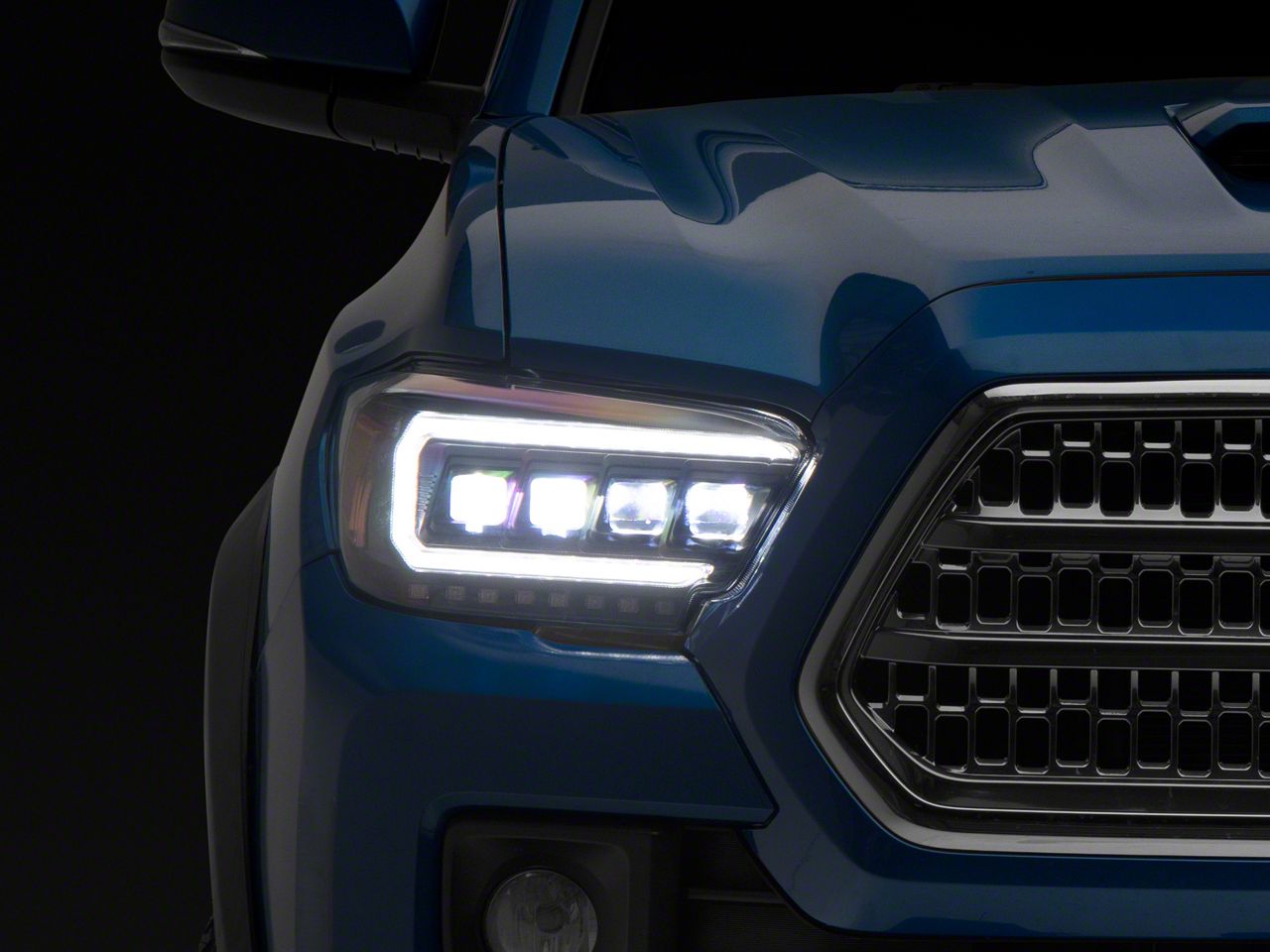 Application. These APEX Series Multi-Beam High-Power LED Module Headlights; Black Housing; Clear Lens are designed to fit 2016-2023 Toyota Tacoma models equipped with Factory Halogen and LED DRL lights. Driver and passenger side lights are included.