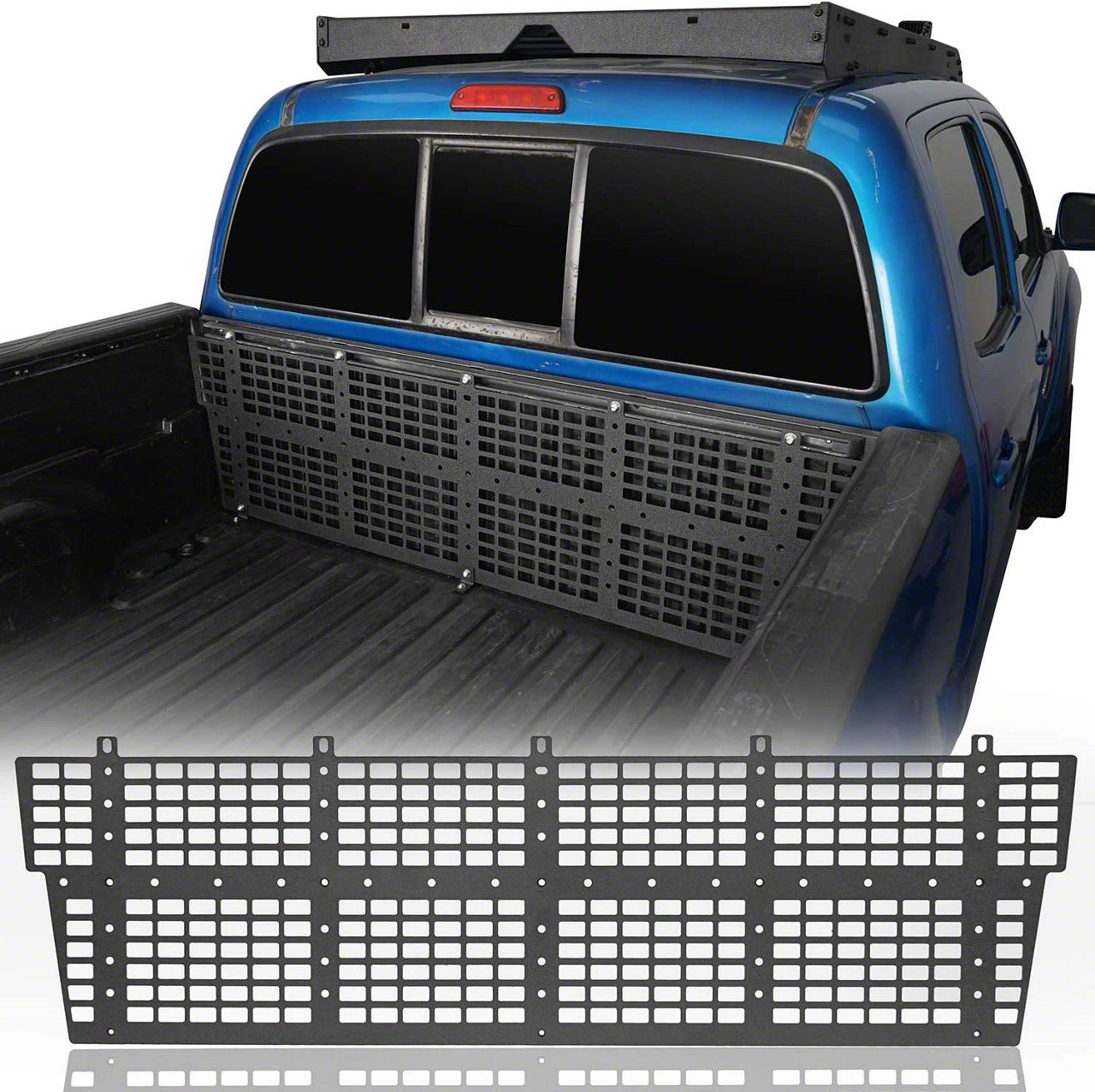 Enhanced Utility. Maximize the utility and organization of your Tacoma truck bed with the Bed Center MOLLE Panel. It is built from high-strength, lightweight steel, ensuring durability and long-lasting performance. Featuring the MOLLE system, this panel provides endless configurations to suit your specific needs. MOLLE is a universal system used by armed forces worldwide, known for its adaptability and reliability. With it, you can easily attach and rearrange bags, pouches, and other gear with minimal effort.