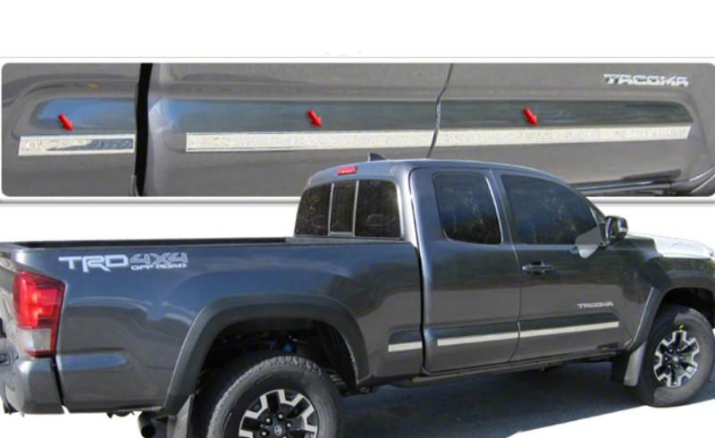 Application. This 4-piece set of Body Molding Stainless Steel Insert Trims is designed to fit all 2016 to 2023 Toyota Tacoma Access Cab with 6-Foot Bed models.