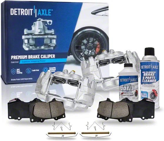 Enhanced Stopping Power and Durability. Revamp your vehicle's braking performance with the Complete Front Brake Kit, featuring Brake Calipers with Ceramic Brake Pads, Brake Fluid, and Cleaner. This comprehensive kit provides everything you need for an efficient front brake replacement. The ceramic brake pads deliver enhanced stopping power and durability, ensuring optimal performance in various driving conditions.