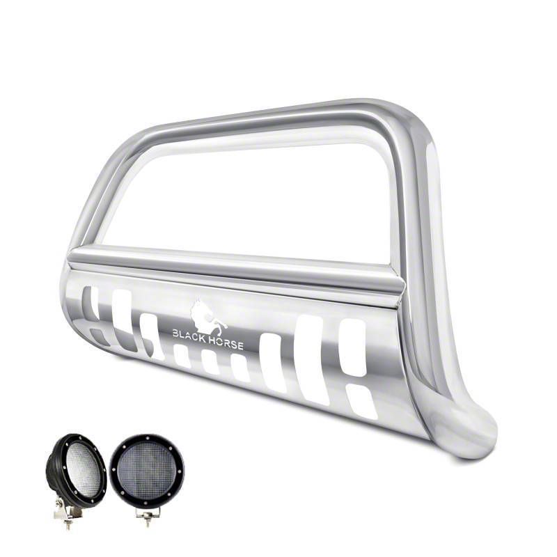 Black Horse Bull Bar Kit Skid Plate Stainless Steel Compatible with 2016-2023 Toyota Tacoma-BB096410-SP-PLFB