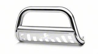 Impacts and Debris Protection. Equipping your Tacoma with this Bull Bar with Stainless Steel Skid Plate; Stainless Steel lets you drive more at ease because of the front end protection it provides. With its durable build, this bull bar effectively protects your Tacoma against impacts and road debris. Furthermore, it is integrated with a stainless steel skid plate that safeguards your truck's undercarriage.