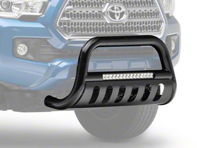 Provide your truck with an aggressive and beefed up look in an instant with one of our new Toyota Tacoma bull bar options. Each one of the bull bars that we carry is designed for your full-size truck and it will provide you with the rugged and advantageous look that you seek. Anyone who dares to tempt you out on the open terrain will instantly change their mind the moment they see your intense bull bar. You mean business and your truck’s exterior can speak volumes for you. Each one of the bull bars that we feature in our online shop is made to take on any type of damage that may try to come your truck’s way. The bull bar will absorb the impact instead of allowing the truck to absorb it all. Each one of the bull bar options in our shop is made from quality steel tubing and these bars offer you the supreme protection that you need. With your rugged and rough off-road truck in mind, many of these bull bars do come with a skid plate for the front of the truck, which will protect your undercarriage on large bumps and over even larger rocks. While we do carry some of the basic bull bar options here in our shop, we also carry fancier options such as ones that come with lights or light bars and those that have mounts for lights, should you so choose to add them. You are able to choose the ideal finish you like for your part and we can ship all products to your door. ExtremeTerrain is proud to be able to offer you affordable and quality bull bars in our online shop. Come take a look at our inventory today and find the right bull bar for your needs.