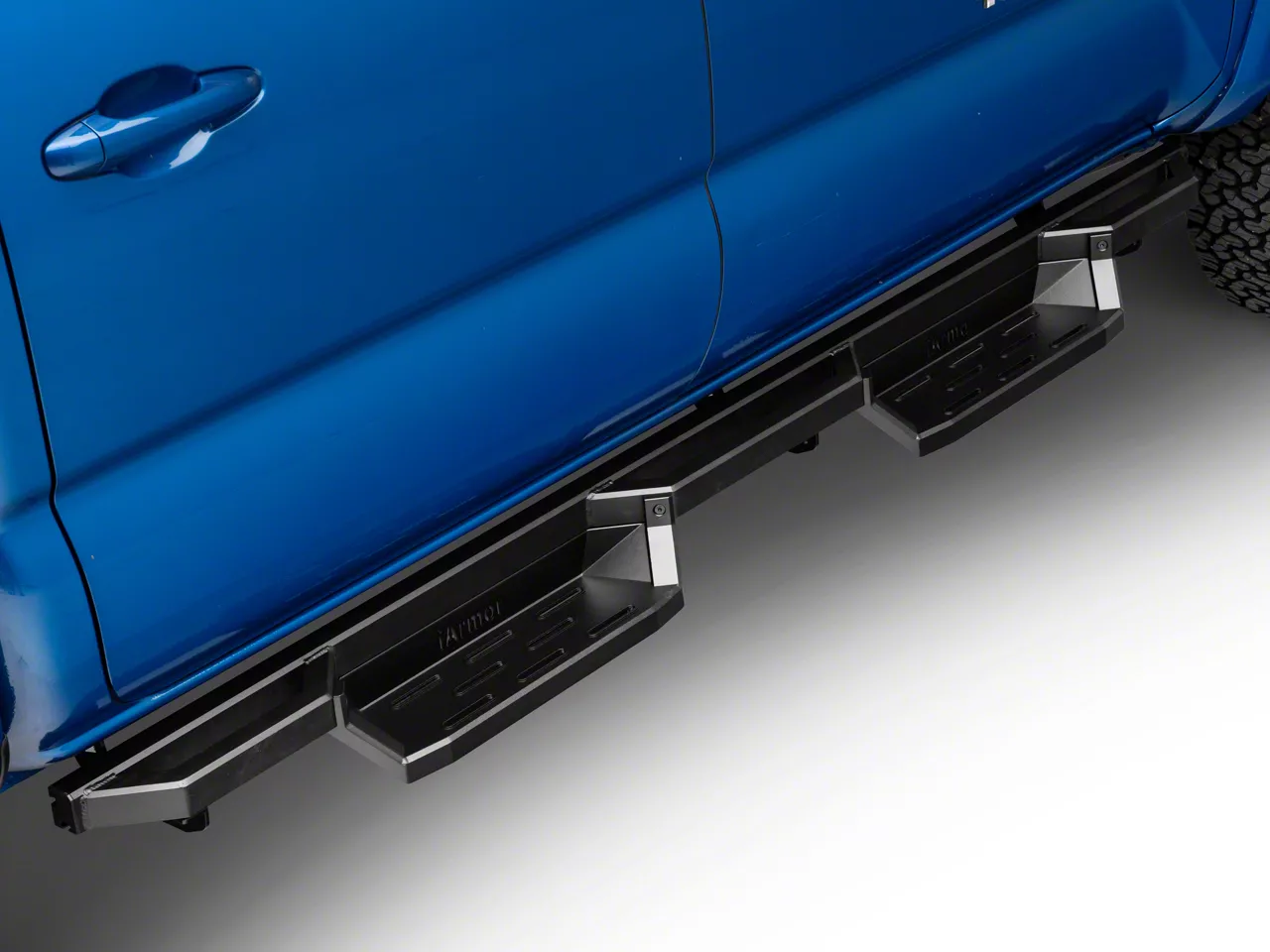 Application. The Square Tube Drop Style Nerf Side Step Bars; Matte Black fit all 2005-2023 Toyota Tacoma Double Cab models.